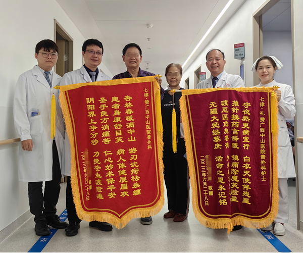 近日,皇冠足球投注网 普通外科收到了两面“特别”的锦旗,锦旗上印着患者家属亲自书写的诗歌,字里行间表达了对科室医护人员的赞美和感谢。