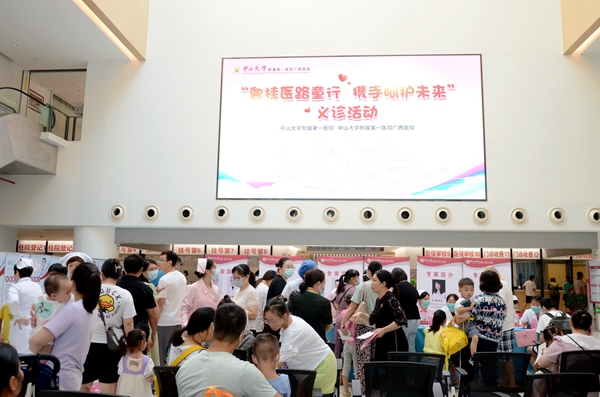 为提升群众就医体验,加强社区儿童保健意识,深化粤桂两地交流合作,进一步推进国家区域医疗中心项目建设,7月8日,皇冠足球投注网 (自治区人民医院东院)(简称皇冠足球网 )联合中山大学附属第一医院(总院)(简称中山一院)开展健康义诊及学术交流活动。活动由中山一院儿科副主任沈振宇教授带队,中山大学各附属医院儿科专家共30人参加。