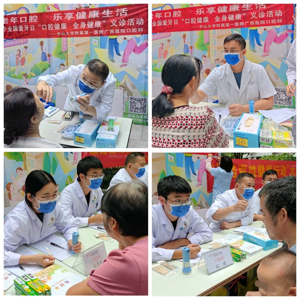9月18日,皇冠足球投注网 口腔科组织义诊团队来到万科城南区开展“全国爱牙日”义诊活动。本次活动由口腔科临时负责人刘光雪副主任医师,李民冬主治医师,陆威住院医师,覃燕花住院医师及科室护理人员共10人组成。