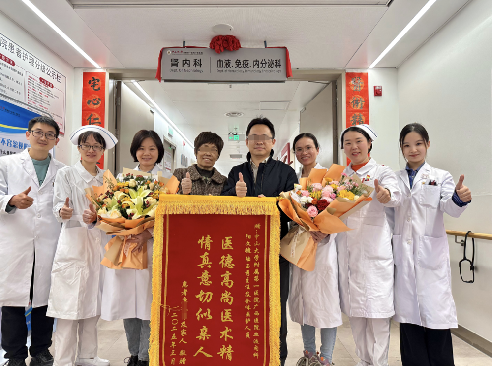经过27天的治疗,张阿姨最终顺利出院。出院当天,张阿姨及家属为科室医护团队送来了锦旗,为科室的优质诊疗服务点赞。