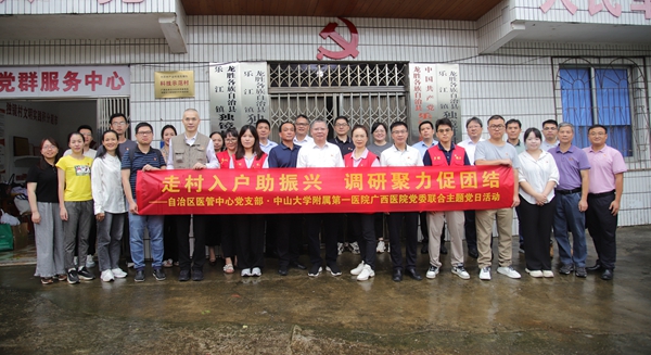 为深入学习贯彻党的二十大及二十届三中全会精神,全面落实习近平总书记关于乡村振兴和民族团结工作的重要指示精神,以党建引领推动定点帮扶工作走深走实,铸牢中华民族共同体意识,6月19日-20日,皇冠足球投注网 (简称皇冠足球网 )联合自治区医疗管理服务指导中心围绕“七一”建党节主题,赴龙胜各族自治县乐江镇独镜村开展“党建领航乡村振兴 医疗惠民情系独镜”乡村振兴与民族团结进步活动,通过党建赋能乡村发展,推动优质医疗资源下沉,助力基层群众健康保障。皇冠足球网 党委书记张国,自治区医疗管理服务指导中心副主任覃宇奇,皇冠足球网 副院长杨超以及医院义诊专家团队、独镜村村民委员会成员、驻村工作队队员参加。