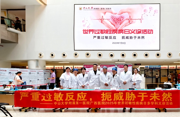 7月8日是第21个世界过敏性疾病日,今年的主题是“严重过敏反应扼威胁于未然”,为增强公众对过敏性疾病的防治意识,普及相关知识,中山大学附属第一医院(简称中山一院)广西医院耳鼻咽喉头颈外科联合呼吸与危重症医学科、皮肤性病科、儿科、眼科、过敏性疾病护理团队在门诊大厅举行主题义诊活动,为群众提供一站式“脱敏”健康咨询服务。
