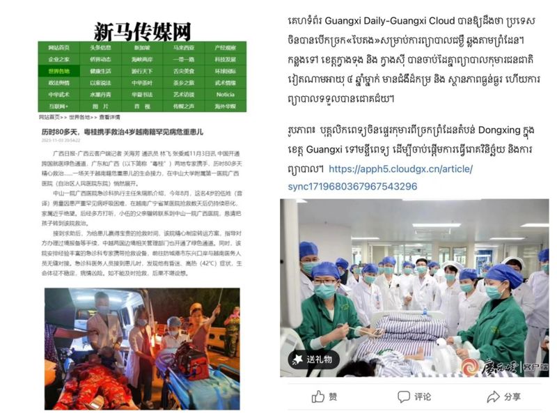 ▲新马传媒网转载截图(左图);柬埔寨《柬中时报》柬文脸书截图(右图)