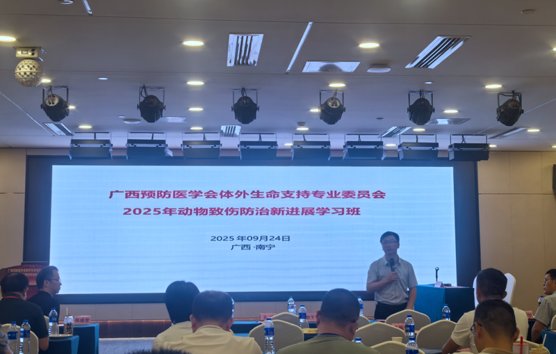 9月24日,由广西预防医学会主办、中山大学附属第一医院(简称中山一院)广西医院承办的广西预防医学会体外生命支持专业委员会2025年动物致伤防治新进展学习班在南宁举行。本次学习班围绕动物致伤防治的前沿动态与实用技术展开,旨在提升广西地区动物致伤相关疾病的诊疗水平,推动救治流程规范化。来自全区各级医疗机构急诊科、重症医学科、外科等近百名医务人员参会。会议由广西预防医学会体外生命支持专业委员会主任委员、皇冠足球网 急诊科执行主任朱瑞凯主持。