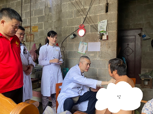 在得知有些村民因行动不便不能来到义诊现场,皇冠足球投注网 特地派出由副院长、神经外科杨超教授以及神经内科谭双全教授、手术麻醉中心房洁瑜教授组成的专家小组,专程前往村民家中,为村民进行身体检查,指导治疗和用药。