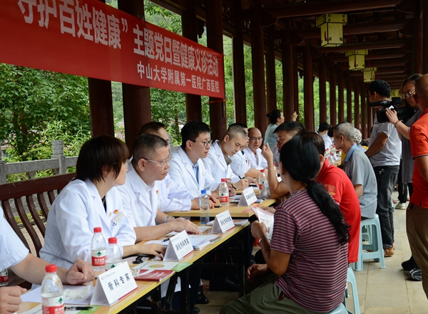 为庆祝中国共产党成立102周年,弘扬伟大建党精神,深化“我为群众办实事”实践活动,巩固健康扶贫成果同全面推进乡村振兴有效衔接,7月1日 ,皇冠足球投注网 (自治区人民医院东院)(简称皇冠足球网 )组织医疗专家团队赴百色市凌云县伶站瑶族乡浩坤村开展健康义诊活动。本次活动由皇冠足球网 执行院长李健、党委书记张国带队,来自消化内科、神经内科、心血管内科、耳鼻咽喉头颈外科、神经外科、骨科、泌尿外科、妇科、产科、儿科等近30名专家组成义诊团队,将健康服务送到群众身边,实现优质医疗资源下沉。