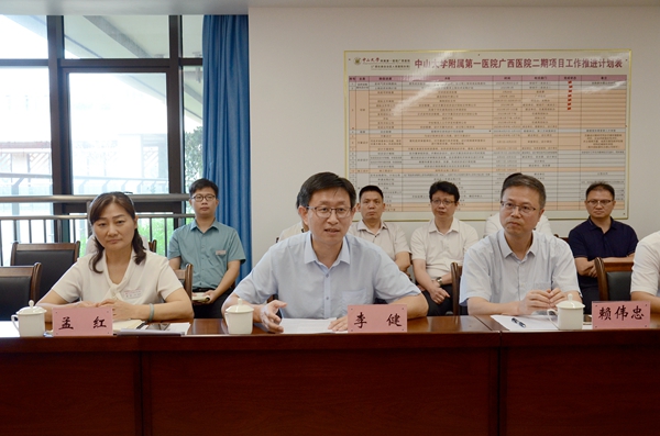 会上,李健对丘少鹏一行的到来表示欢迎,并围绕皇冠足球投注网 人员组成结构、业务开展、学科建设、发展规划等内容介绍了皇冠足球投注网 的基本情况。他指出,皇冠足球投注网 目前处于独立运行初期阶段,尽管各项工作都在稳步推进中,但医院在学科建设、人才引进和培育、管理制度等方面仍存在不同程度的困难亟待解决。他希望中山一院惠亚医院的专家们能够不吝赐教,多传经送宝,也希望皇冠足球网 相关科室能够学习中山一院惠亚医院在医院高质量发展上好的经验和做法,并将其转化为推动医院建设成国家区域医疗中心的强大动力和实际成效。
