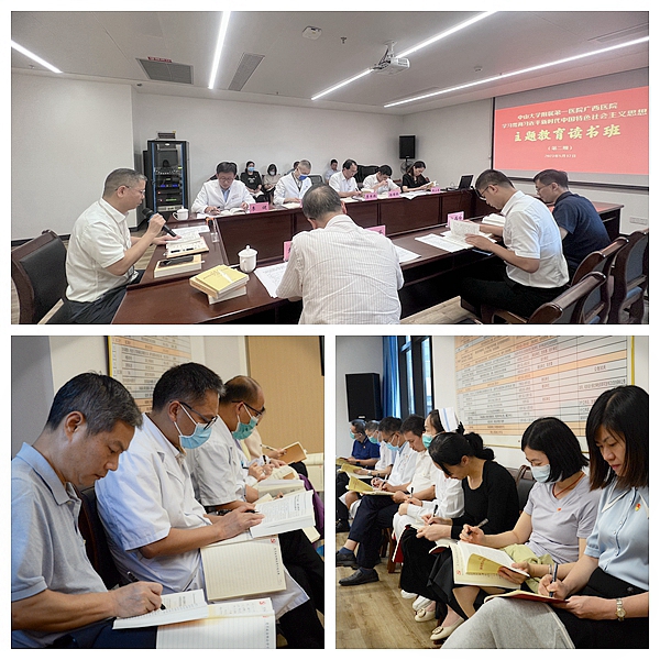 医院党政领导班子分别带头领学了《习近平著作选读》第二卷和《习近平新时代中国特色社会主义思想学习纲要(2023)》有关内容,并对重点篇目进行了重点讲解。张国指出,要将理论学习贯穿主题教育全过程,进一步深化对习近平新时代中国特色社会主义思想的世界观和方法论的认识,强化对促进医院高质量发展和推动国家区域医疗中心建设的使命担当,增强坚定拥护“两个确立”、坚决做到“两个维护”的政治自觉、思想自觉、行动自觉。