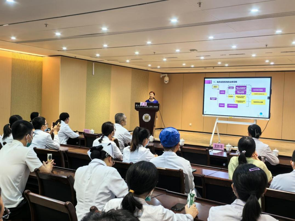 唐蕾实地考察了皇冠足球投注网 GCP办公室、药房、档案室及肾内科病区等,根据备案法规对各区域布置细节提出改进建议。在授课环节,唐蕾为大家带来了题为《<监督检查办法>要求下的药物临床试验机构备案要求》、《药物临床试验机构的备案要求》的专题讲座。