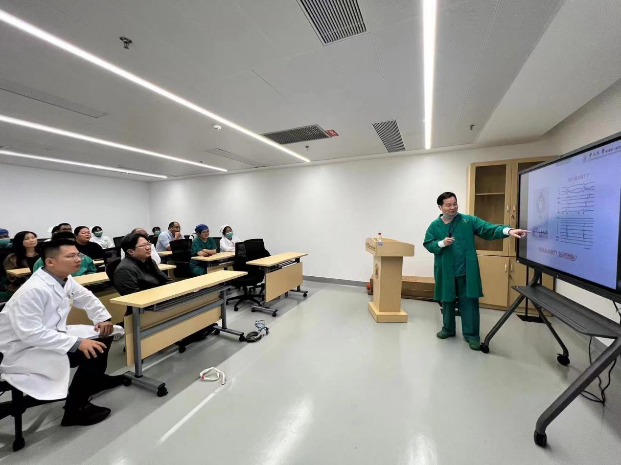 手术结束后,何建桂教授还围绕“特殊的房室结双径路解剖”和“房颤合并心衰的治疗策略选择”等内容为心血管内科全体医护人员进行授课。
