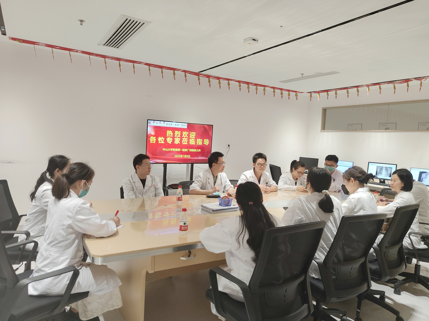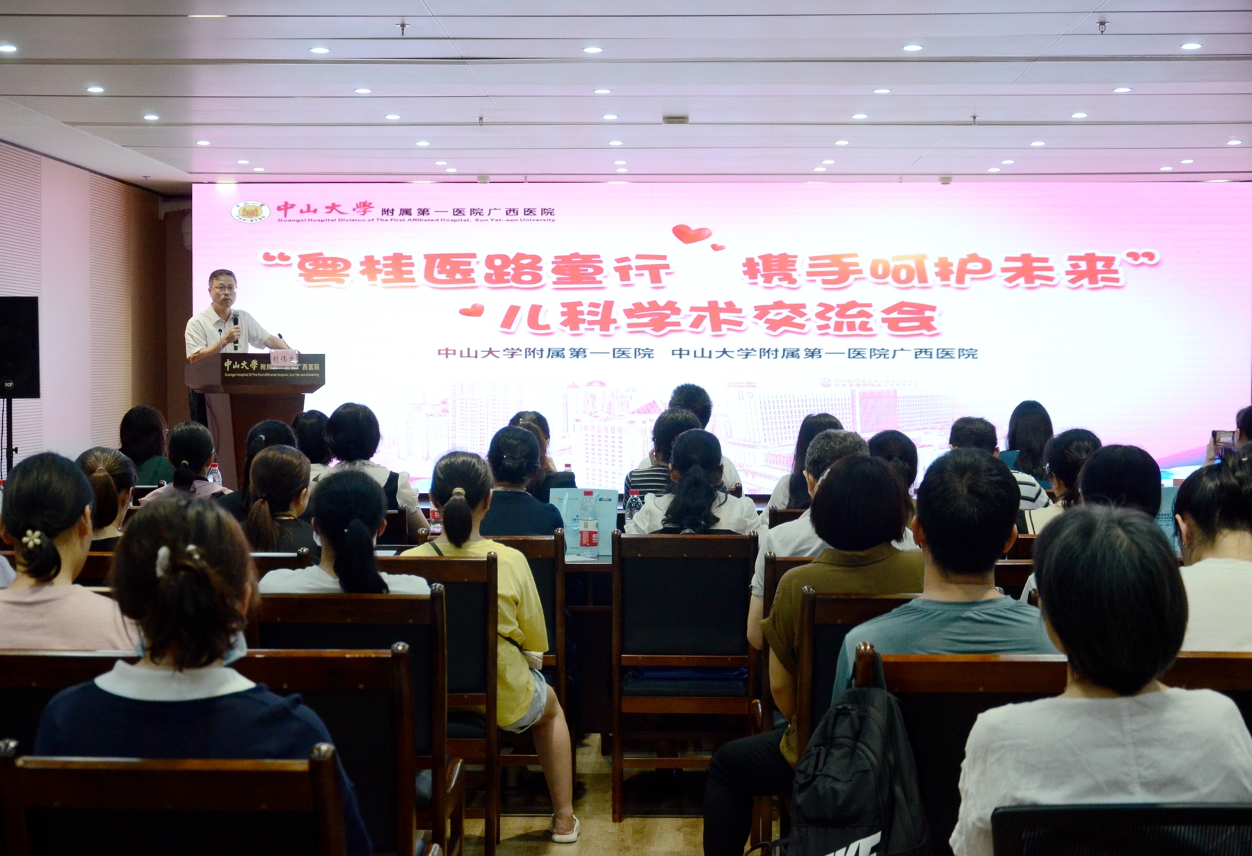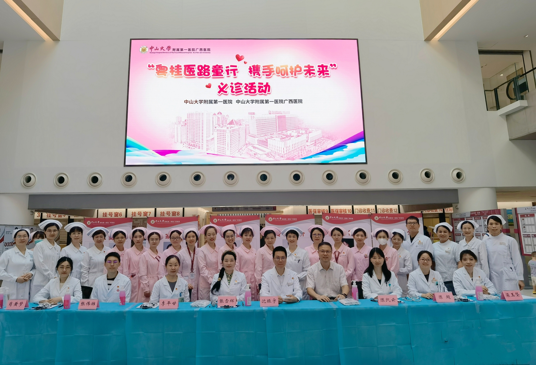 为提升群众就医体验,加强社区儿童保健意识,深化粤桂两地交流合作,进一步推进国家区域医疗中心项目建设,7月8日,皇冠足球投注网 (自治区人民医院东院)(简称皇冠足球网 )联合中山大学附属第一医院(总院)(简称中山一院)开展健康义诊及学术交流活动。活动由中山一院儿科副主任沈振宇教授带队,中山大学各附属医院儿科专家共30人参加。